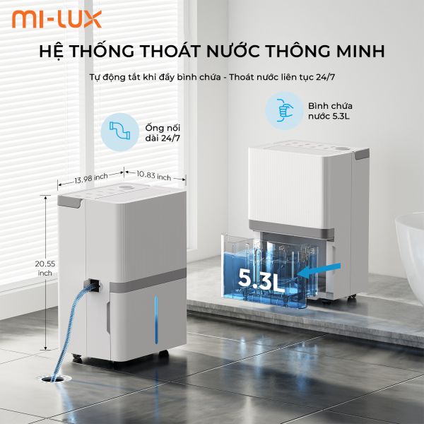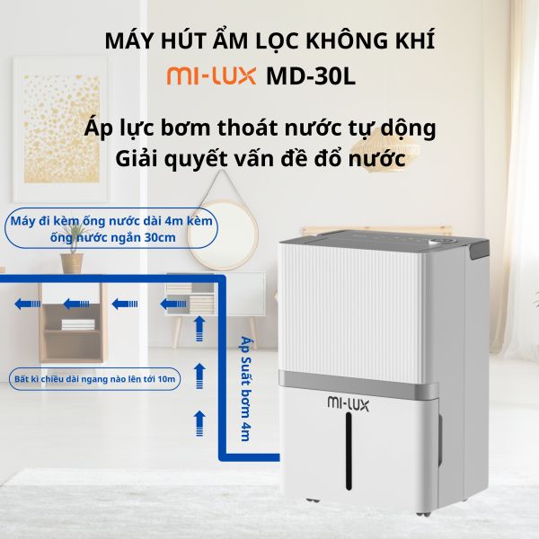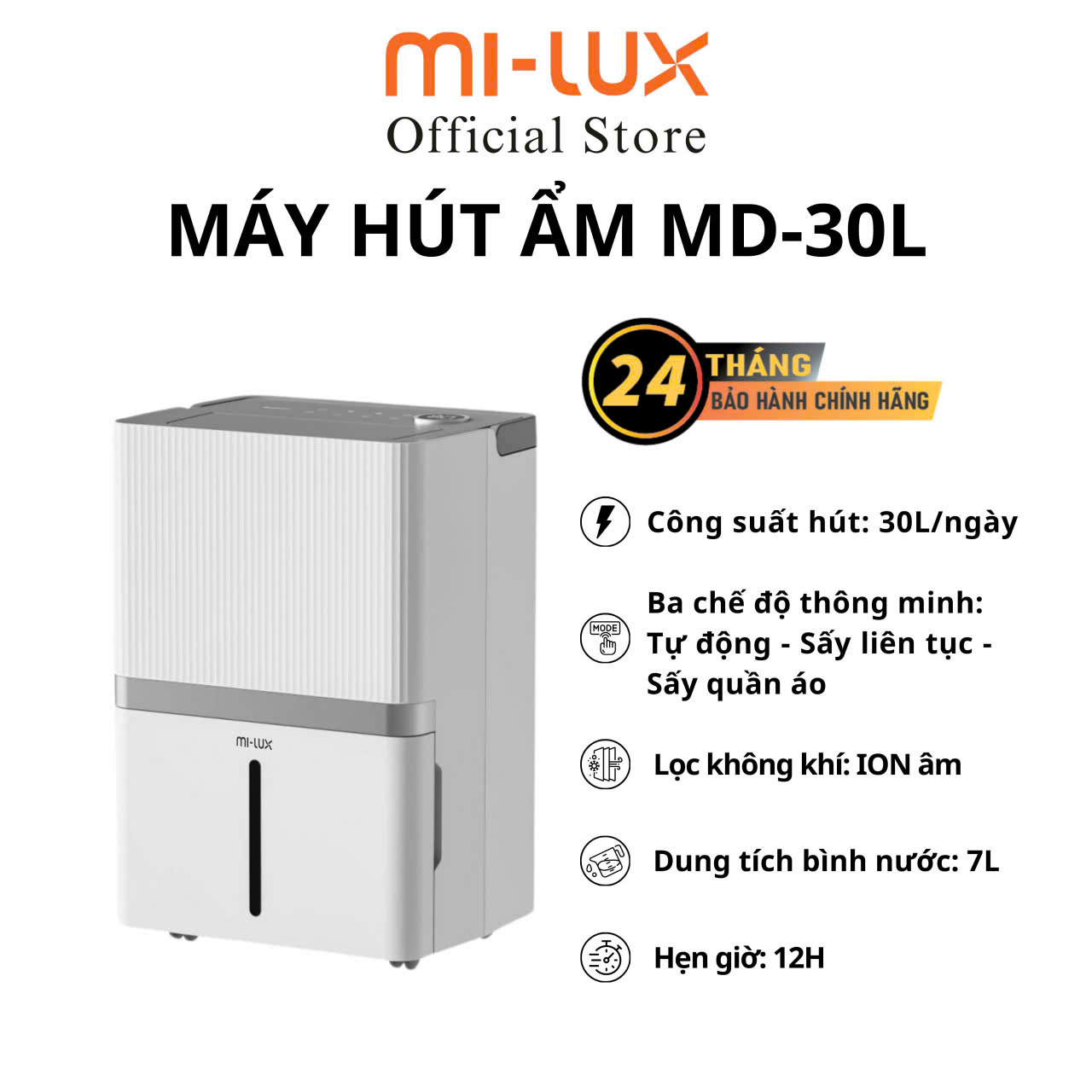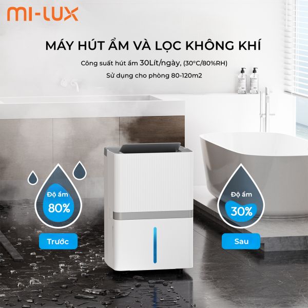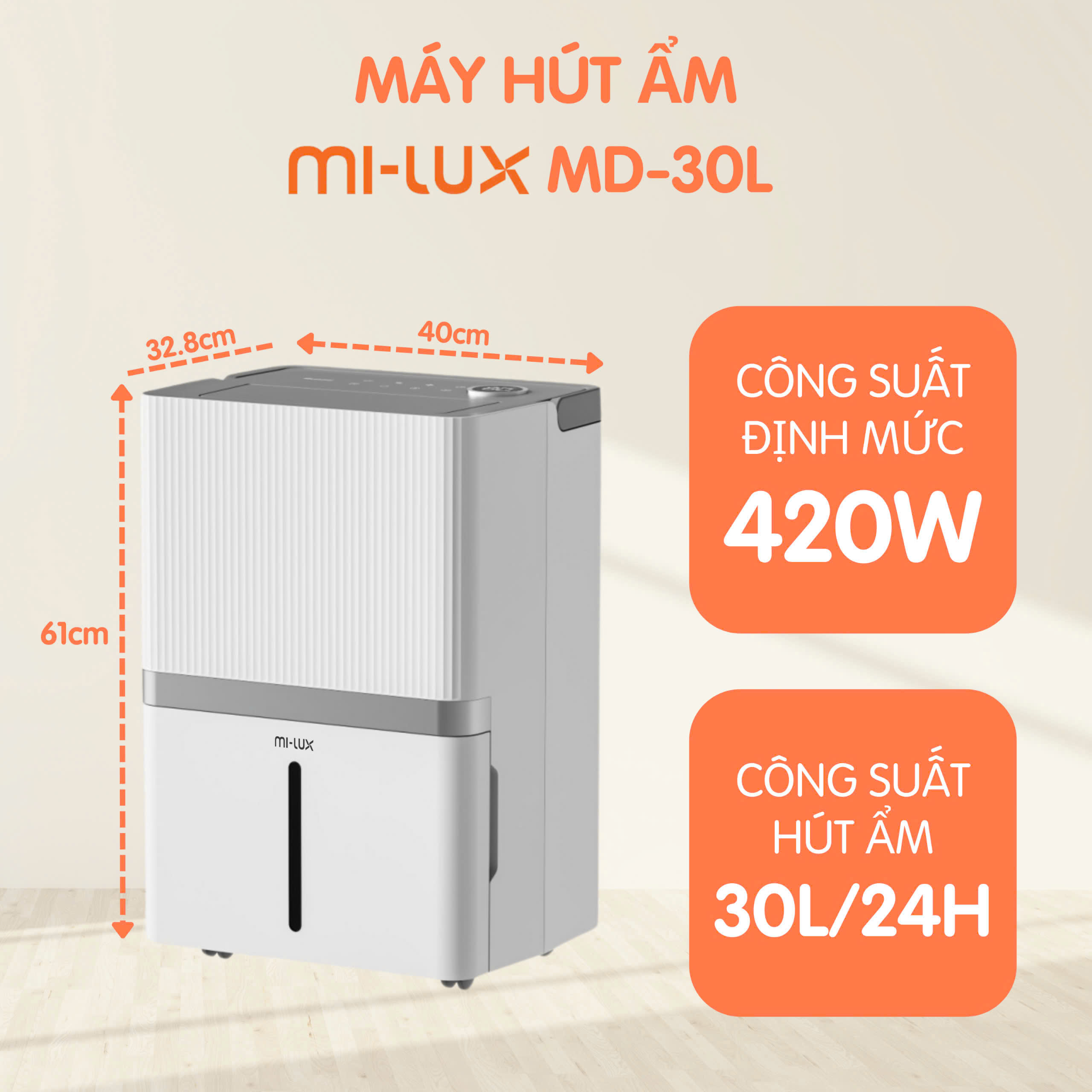 Không khí Việt Nam ẩm, gây ra mùi ẩm mốc khó chịu và nhiều sự bất tiện, lâu dần cũng sẽ ảnh hưởng đến đồ dùng điện tử trong nhà cũng như ảnh hưởng nghiêm trọng đến sức khỏe của gia đình bạn. Máy hút ẩm không khí thông minh Mi-lux MD 30L chính là giải pháp thiết mà bạn cần đầu tư cho ngôi nhà của mình. Để có thể khắc phục hiệu quả các sự cố trên một cách nhanh chóng từ đó đem lại bầu không khí khô ráo hơn cho gia đình.