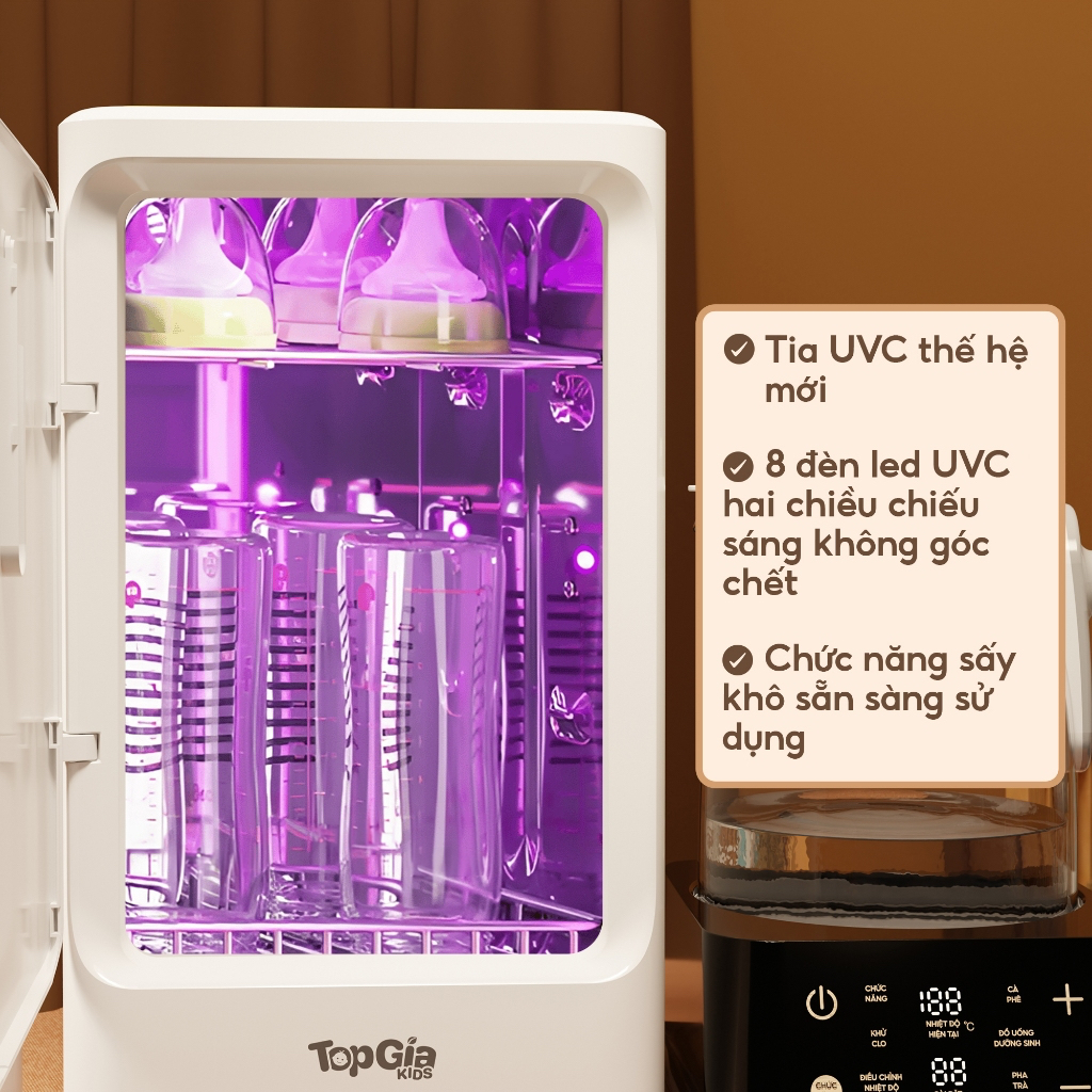 Máy đun nước hâm sữa tiệt trùng sấy khô bằng tia UVC TopGiaKids X18 (M1-02) bảo hành chính hãng 3 năm