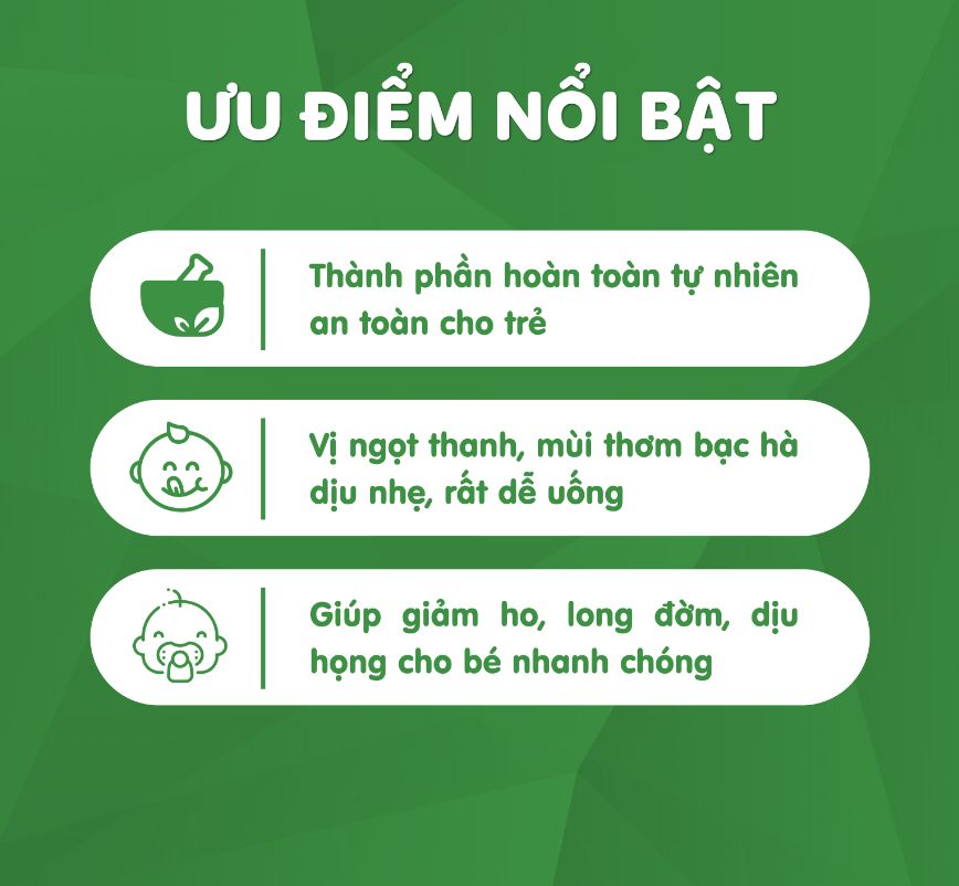 - Giúp giảm ho, long đờm cho bé nhanh chóng.