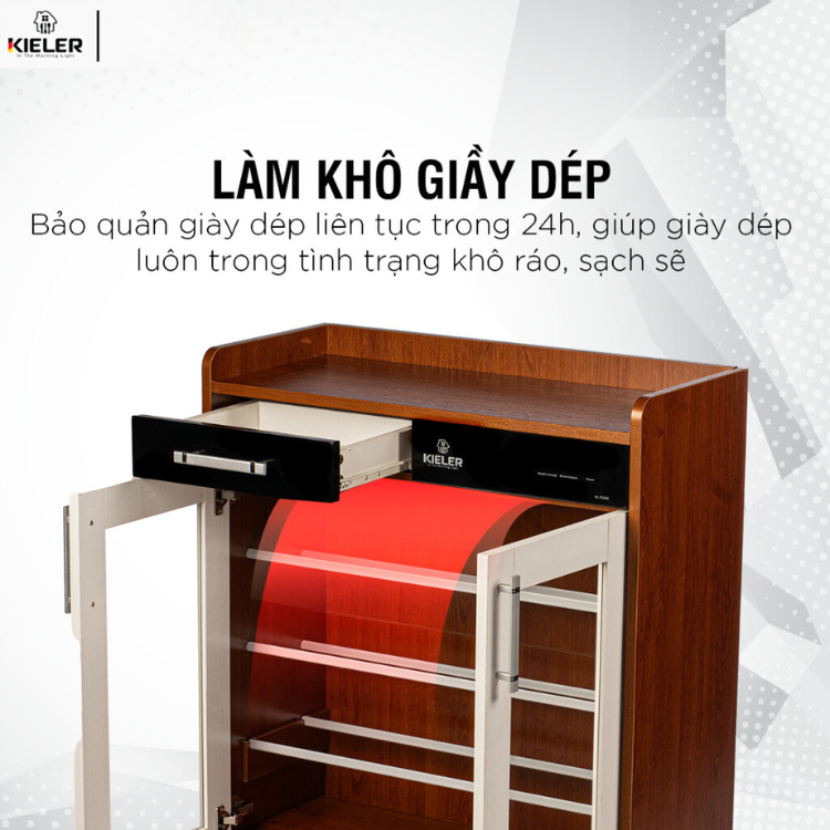 Tủ sẽ giúp bảo quản giày dép liên tục trong 24 giờ, giúp giày dép luôn khô ráo, sạch sẽ.