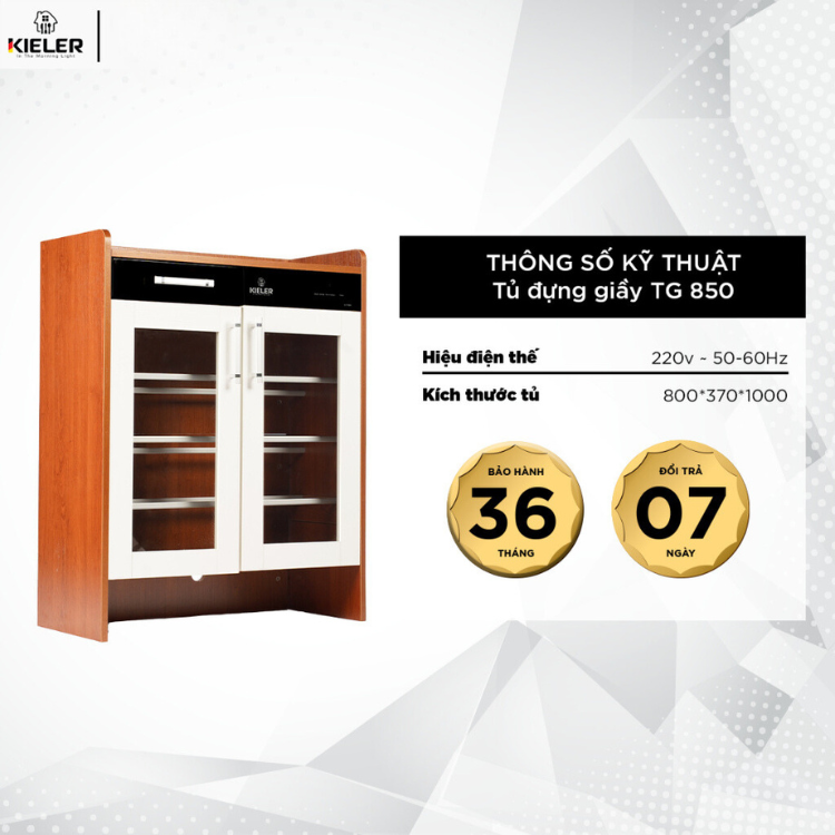 - Tên sản phẩm: Tủ sấy giày KL-TG850 làm khô tự động 24 giờ liên tục luôn trong tình trạng khô ráo, sạch sẽ, khử mùi cho giày dép bị ẩm